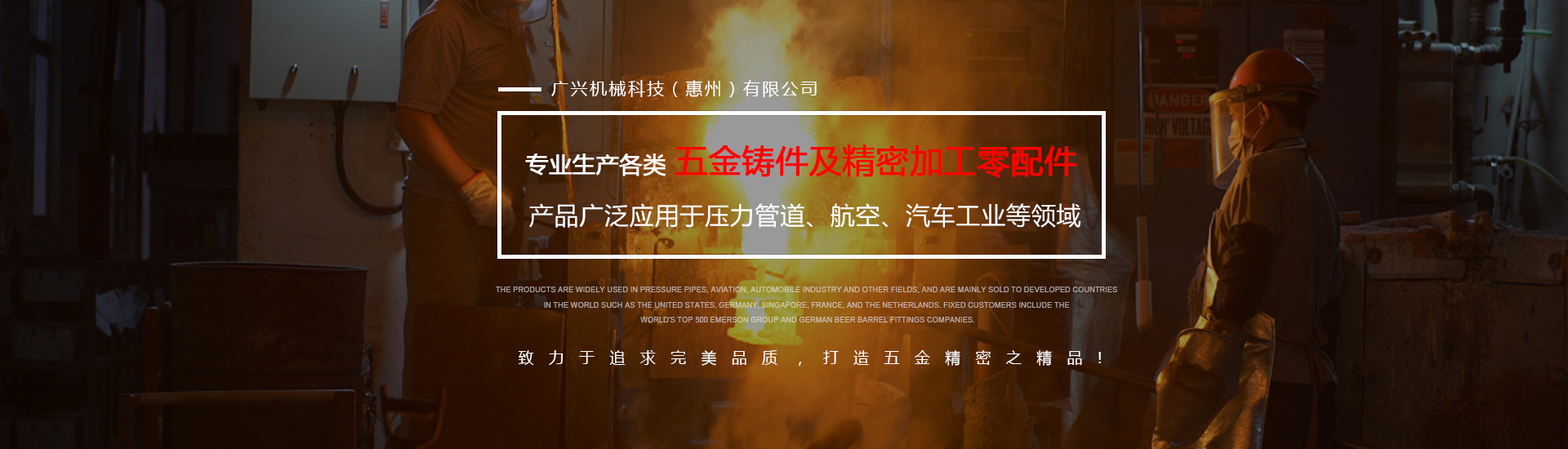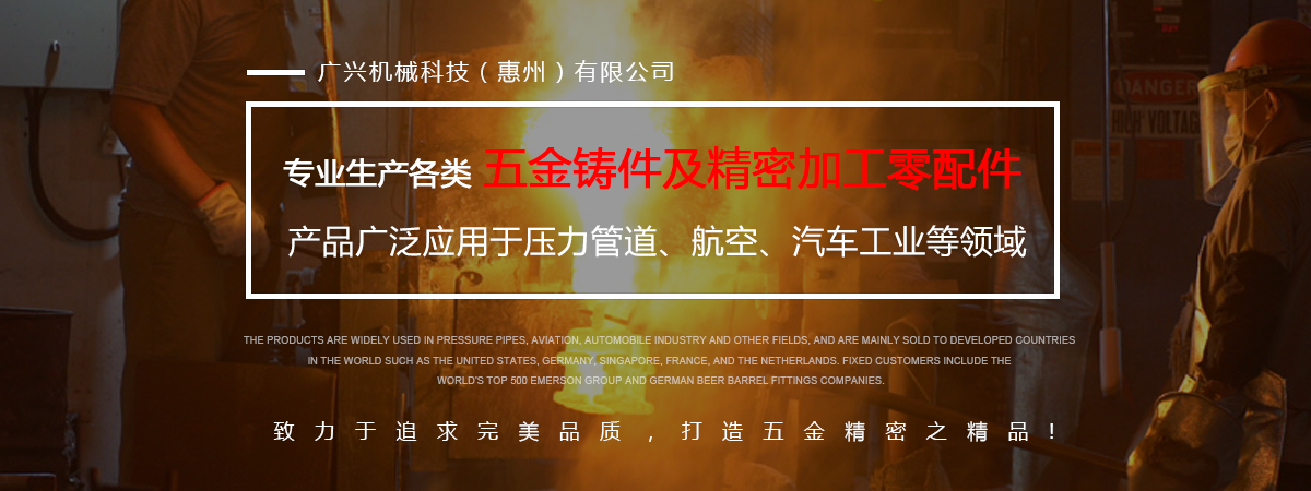 公司專業生產各類五金鑄件及精密加工零配件,可熔煉材質為全系列不銹鋼及碳鋼,主要生產材質有304、316、316L、17-4、430、409等,年生產各種不銹鋼鑄件1000余噸。產品廣泛應用于壓力管道、航空、汽車工業等領域,主要銷往美國、德國、新加坡、法國、荷蘭等世界發達國家,固定客戶有世界500強艾默生集團及德國啤酒桶配件公司。